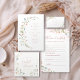 繊細エレガントな水色のワイルドフラワーのデザインとスモダンクリプト。柔らかい赤面ピンク、オフ白、ベージュ、ほこりっぽい青、植物性の緑、とロマンチックなパステルシンプルパレット。素朴な素晴らしパーティーに対しては、春と夏のボホ国庭園の結婚式パーティー。コレクション内のすべての一致するピースを表示する。