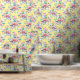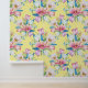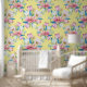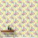 ピンクエレガント、ブルー、イエローの花柄 壁紙