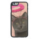 ピンクエンジェルハロー付き黒猫 CarvedウッドiPhoneケース