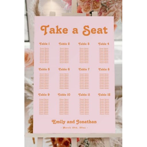 ピンクオレンジレトロ70s結婚のサンキューカード 招待状