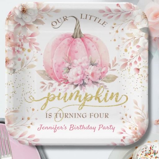 Pink Pumpkin Floral Gold Glitter Girl 4th Birthdayデザイン: H-Art Studio Design