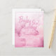 かわいいエレガント予算ベビーガール赤ちゃんシャワー招待状。ピンク色のふわふわの雲の背景には、ピンクのタイポグラフィ文字読ベビーガールシャワー。完全なイベントと詳細を追加し連絡てパーソナライズ。