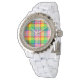 ピンクグリーンイエロータータンチェックプレイドデザイン 腕時計