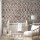 ピンクグリーンティール(緑がかった色)ブルーアールヌーボー壁紙