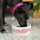 ファッシパーソナライズされたャルなペットの飼い主のためのペットボウル。犬や猫に最適なピンクと金ゴールドを背景にした名前をカスタムする。あなたのペットの名前は可能でカスタマイズす。犬や猫楽しむがペットフードカスタマイズで食べている。