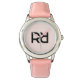 ピンクスタイリッシュスモダンクリプト女子モノグラムイニシャル 腕時計