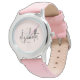 ピンクスタイリッシュスモダンクリプト女子モノグラム名 腕時計