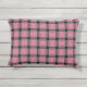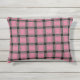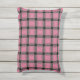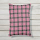 オリジナルデザインZoeSPEAKによるこのアクセント枕はバスケット織りのパターンである。ピンクストライプののリボンは上下に織り合わされ、非常に暗い背景に影や曲線を作り出す。