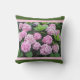 この美しいピンクのフローラ枕であなたの庭の家具をアクセント。ハンターグリーンの背景にピンクのあじさい花の写真を飾った屋外枕。ピンクのストライプは花の写真のフレームに使用される。裏面はハンター無地のグリーン色。マザーズデイ、ガーデンパーティー、毎日など、特別な機会に夏のシーズンを通して、この枕を使用。