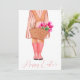 ピンクのチューリップとバニーの耳で満たされたバスケットとソフトピンクのファッションガールイラストレーションとイースターグリーティングカード。下部に「ハッピーイースター」という言葉を付け加える自分のメッセージを背面に追加する。