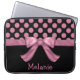 ピンクパーソナライズされたブラック水玉模様リボン弓 ラップトップスリーブ