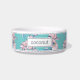 アロハが最も多いペットのためにインスパイア、この可愛い島の犬や猫丼は、ターコイズのティール(緑がかった色)の背景に赤面ピンク、ラベンダーの色合いの熱帯の蘭の花や植物の葉のパターンを特色にしている。ペットの名前でパーソナライズ。
