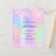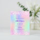 AとガーリーSweet 16フェミニンパーティの招待状。前面:紫、ピンク、ミントグリーンのホログラフィックカラーの虹。飾赤面の紙吹雪名前とパーティー・詳細のパーソナライズおよび追加名前は手書文字のスタイルと紫の色の文字です。1枚= 1枚の招待状を印刷したエッジからエッジ