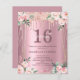 ピンクフローラグリッタースウィート16番目の誕生日招待状