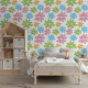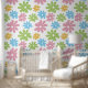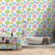 ピンクブルーイエローライムグリーンフローラアートパターン 壁紙