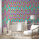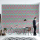 ピンクブルーオレンジブラックジグザグパターンピールスティック 壁紙