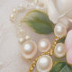 真珠とレビクトリアンースの壁を持つ水の色のピンクと白のバラ。