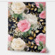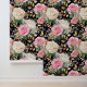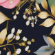 ミッドナイトエレガントブラックの壁紙に金ゴールドで輪郭を描いたベビーと水色ピンクと白のバラ。