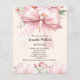 ピンクボウクリーム花模様ガールバプテスマの招待