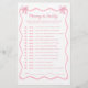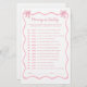 このピンクの弓のベビーシャワーゲームでコケットのベビーパーソナライズされたシャワーテーマに魅力を追加。赤ちゃんシャワユニークーのゲームアイディアに最適な、この'Guess Who'ゲームはあなたのお祝いにおもしろいツイストをもたらす。愛らしいピンクの弓デザインを搭載し、あらゆる弓ベビーシャワーまたはピンクの弓ベビーシャワーテーマを補完。この魅力的なアクティビティは、ピンクの赤ちゃんシャワーアイディアに理想的であり、任意の弓パーティーに思い出に追加し、すべてのゲストのための永続的な思い出を作成する。