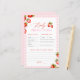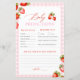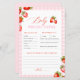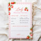 ピンクボウストロベリーテーマベビーシャワー予測&アドバイスゲーム。来客は楽しむ到着の様子を予想する。