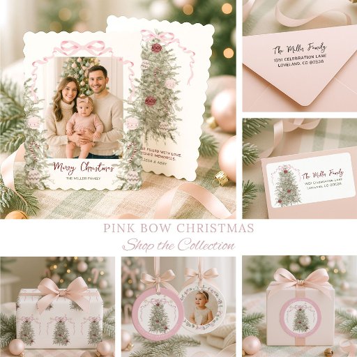 ピンクボウ4枚フォトクリスマス シーズンカード