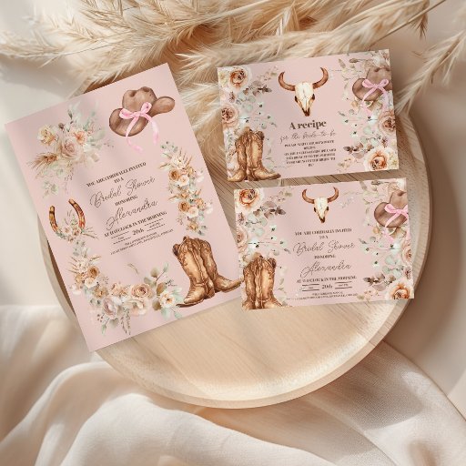 ピンクボホフローラウェスタンブライダルシャワー アクリル招待状