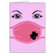 これらのTシャツや他のアイテムは、ピンクの医療用マスクを着た顔の様式化されたグラフィックで飾られている。