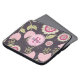 ダークリーフの背景にピンクのチューリップと植物のパタパターン(の模様が)あるーン。イニシャルと名でパーソナライズ