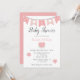 ピンクモダンハートベビーガールベビーシャワー招待状
