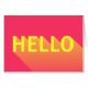 黄色の「こんにちは」の抽象デザインと長い影のグラデーションを備え鮮やかたモダン、このおもしろいピンクカードと家族や友人に陽気な挨拶を送る。*ズームプレビューに表示されるZazzle透かしは、最終印刷製品には表示されないことに注意。©ローズウッド、柑橘類