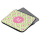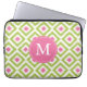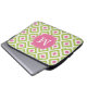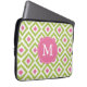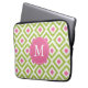 ピンクモノグラムのグリーンダイヤモンドイカットパターン ラップトップスリーブ