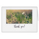 カスタマイズ可能なサンキューカードバックライトの花に低い太陽と初期夕べの白いカマ輝くシの野生の花の美しい写真。内側の文字を好きなように変更するか、削除する。