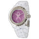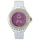 ピンクリボン認識度明るい赤紫色カーボンスタイルダイヤル 腕時計