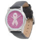 ピンクのクラシックと乳癌認識度のためのフェイクグリッターデザインを搭載した美しいリボンのブラックレザーウォッチ