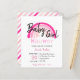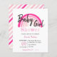 かわいい予算ベビーガールベビーシャワー招待状。ピンク色の抽象芸術レインボーストライプの背景には、黒いタイポグラフィ文字読ベビーガールシャワー。完全なイベントと詳細を追加し連絡てパーソナライズ。