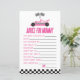 ピンクレースカーアドバイスベビーシャワーゲームアクティビティ