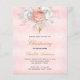 バプテスマエレガントを受け祝て、女の子だ。赤面ピンクのグラデーションのメタリックな背景。バラ飾金ゴールドと白花模様、バラ、銀フェイクグリッターの粉と金ゴールドのクロスとフェイク。子と詳細の名前をカスタマイズして追加する。