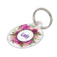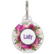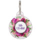 ピンクローズ&ポピーフローラブーケオンピンクストライプ色 ペット ネームタグ