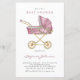 ピンクヴィンテージベビーカー赤ちゃんシャワー招待状