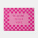ピンクのモダンチェッカーボード歓迎フォーマット。自カスタマイズ分の文字で一致する項目が使用可能。オリジナルアートはアーティスト自身のイラスト。カスタマイズや特別なリクエストを行う場合は救済、下記のメッセージメッセージをクリックして下さい。©ゾーシャップマンデザイン