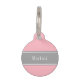 ピンク無地の色の濃いグレーのリボン名モノグラム ペット ネームタグ
