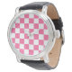 ピンク白チェッ市松模様にクパターン 腕時計