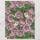 バラの花と金魚の鳥の手描きベクトルパターン。パターンのすべての要素描は、まず紙にインクを付け、次に再描画し、Illustratorで色を付ける。