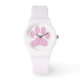 ピンク色の白い幾何学模様のポープリント 腕時計
