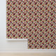ピンク色の赤と金ゴールドの花を彩るタンストライプ 壁紙