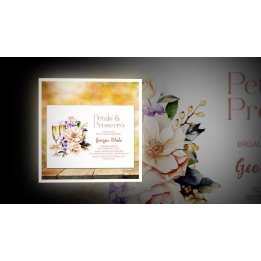 ピンク花びらとプロセッコブライダルシャワー 招待状
