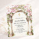 ピンク花模様のアーチガールファースト・コミュニオンの招待