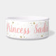 ピンクや金ゴールドフェイクグリッターの姫パーソナライズされたのペットフードや水には、猫名や犬名を「姫」のタイトルで付け加え、金ゴールドの王冠を紙吹雪の背景に輝かせる宇宙があります。