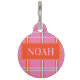 このペット ID タグは、ソフトなピンクをベースに大胆なオレンジとブルーのストライプが特徴で、フロントにはペットの名前を入れるスペースがあります。裏面には、ペットを発見した人のための短いカスタマイズ可能なメッセージと電話番号を入れることができます。明るくモダンで実用的なデザインで、ペットを安全に守りながらスタイリッシュに演出します。